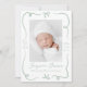 Bienvenue à votre nouveau lot de joie avec ce faire-part de naissance élégant à l'arc vert sauge. L’avant met en évidence la photo verticale de votre bébé encadrée de rubans verts à la sauge dessinés à la main et arcs sur un arrière - plan blanc, avec leur nom et leurs détails de naissance dans un doux script manuscrit. L'arrière comprend une photo horizontale avec espace ci-dessous pour une note personnalisée, parfaite pour partager un message sincère. Un choix agréable pour une faire-part de naissance botanique moderne ou neutre du point de vue du genre.