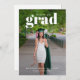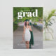 Carte de faire-part moderne de graduation avec votre photo avec un texte superposé qui dit "grad" en lettres blanches en gras. Vous pouvez ajouter une deuxième photo au dos avec un message ou des informations de fête.