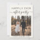 Étage crème légère ou faire-part mariage plus petit et invitation à la réception. Le devant présente votre photo de jour de mariage et "Happily Ever After Party" en typographie simple et un script tendance avec des swashes. Ajoutez vos prénoms et votre date de mariage. Au contraire, personnalisez votre faire-part mariage et votre invitation à la réception de manière plus détaillée, entrez l'adresse URL de votre site Web mariage pour créer un code QR que les invités peuvent scanner pour voir vos photos mariages, tous les détails et RSVP en ligne, et ajoutez vos noms dans un script signature.
