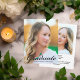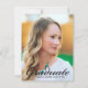 Le diplômé est écrit en simple écriture noire sur votre photo de portrait senior pour une carte de faire-part de diplôme moderne. Customisez avec votre nom et le lycée ou la classe universitaire de 2025 sous la typographie cursive et ajoutez vos détails personnels au verso de ces annonces contemporaines minimalistes de graduation.