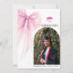 Célébrez votre réussite avec un faire-part photo moderne tendance de graduation en arc rose. Doté d'un design noir et blanc élégant avec un accent de proue élégant, ce faire-part présente élégamment votre photo de graduation. Parfait pour partager votre jalon avec votre famille et vos amis, il ajoute une touche sophistiquée tout en commémorant ce moment spécial dans le style.