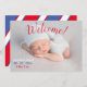 Bienvenue ! Sweet patriotique rouge, blanc et bleu bébé faire-part sexe neutre. Typographie rouge, blanche et bleue. Faites savoir à tout le monde que votre lot de joie est arrivé.
