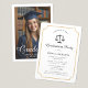 Faites votre faire-part avec une touche d'élégance en utilisant ce faire-part diplômé en droit avec un cadre en or vintage, un texte en arche et un équilibre symbolique de l'échelle au-dessus. Ce modèle personnalisable vous permet de personnaliser le texte, les polices et les graphiques, en vous assurant que votre faire-part reflète votre style unique. Ajoutez la photo de votre grad à l'arrière avec un autre cadre doré pour une finition parfaite. Associez-le à la coordination des invitations à obtenir un diplôme d'études de droit pour un ensemble sophistiqué qui saisit l'essence de votre réussite. Célébrez dans le style avec ce design classique mais moderne, adapté pour mettre en valeur votre succès académique.