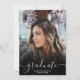 Script diplômé noir et blanc 4 photos faire-part de graduation. Ajoutez 4 de vos photos préférées avec une élégante calligraphie script et un collage de grille photo.