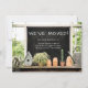 Annoncez votre nouvelle adresse à vos amis, à votre famille et à vos associés avec cette charmante carte à faire-part mobile rustique. Il dispose d'un tableau de bord avec du texte personnalisé que vous pouvez personnaliser avec votre nouvelle adresse personnelle. Le tableau de bord se trouve au-dessus d'une étagère en pot avec des plantes d'intérieur, une maison d'oiseaux et des pots en argile, ainsi qu'une canette d'arrosage plante. Le look est rustique de la ferme avec un thème de jardinage. Il y a aussi un modèle texte au dos de la carte pour personnaliser avec votre message souhaité.