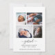 Custom Photo Collage Script Overlay Baby Faire-part de naissance est un design moderne très populaire qui offre une image de héros sur le devant sous une introduction et un nom overlay. Le dos a un colage de quatre photos avec des modèles pour le nom, les statistiques de naissance et accueilli par texte.