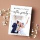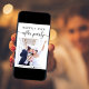 Annonce de mariage intime moderne ou invitation à une réception privée. Le recto présente votre photo, "Fête pour toujours heureuse" dans une typographie simple et un script tendance avec des fioritures et vos noms et date de mariage. Au verso, personnalisez votre annonce et invitation et ajoutez vos noms dans un script ressemblant à une signature.