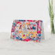 Vintage bohème hippies dansant sur une carte pliée de camping-car. Caravane de voyage colorée jaune rouge bleu. Rideaux floraux des années soixante sur la fenêtre arrière. Camper rétro tendance, photo artistique antique de style retraite. Design unique. Texte personnalisable à l'arrière de la caravane si désiré. Typographie personnalisable à l'arrière. Accroche 'Home Sweet Home' à l'intérieur. Image copyright Marg Seregelyi Photography.