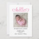Simple mais attrayant faire-part de naissance rose clair et blanc avec un bonjour avec coeur mot art typographie art numérique graphique. Customisez le style et la taille de la police selon vos besoins. Vous pouvez changer la couleur rose du mot art et l'arrière - plan au dos. Ajoutez plus de photos ou de texte à l'arrière.