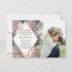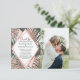 Rose, vert, blanc, et faux imprimé or rose été, tropicale, et élégants feuilles de palmier sur une plantation vert arrière - plan avec des coutures roses en diamants faux imprimé géométrique coutume, cartes faire-part fiançailles. Ce design classique et sophistiqué conviendra parfaitement au couple marié classe, tendance et élégant. Personnalisez avec votre propre message sur l'avant et un monogramme customisé sur l'arrière. Toute la conception d'impression photo.
