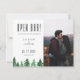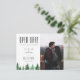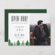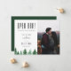 Forêt rustique aquarelle, "OPEN BAR!", humour mariage enregistrer la date carte photo. Le dos de la carte est en couleur vert chasseur massif.