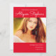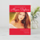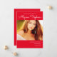 Faire-part de graduation rouge simple et classe avec une seule grande photo sur le devant avec votre nom sur le dessus et l'école et la classe sur le bas en texte blanc. Idéal pour les baccalauréat ou collégial.