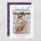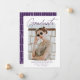 Faire-part tendance de remise des diplômes avec la photo du diplômé encadrée par une bordure blanche rugueuse. "Graduate" s'affiche dans un script de signature violette avec le nom du diplômé, le nom de l'école et l'année de diplôme indiqué ci-dessous. La faire-part moderne de graduation s'inverse pour afficher un motif de ligne unique violet et blanc estampé. Cette carte de faire-part de remise de diplômes photo est parfaite pour les diplômes du lycée et de l'université.