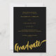 Célébrez la remise des diplômes du collège, de l’université ou du lycée de votre fille avec cette superbe carte de faire-part de diplôme en or et noir. Doté d'une élégante calligraphie de script d'or et d'un modèle photo diplômé, ce design capture l'excitation de nouveaux débuts et la célébration joyeuse. Personnalisez-le avec une photo chère de votre diplômé en utilisant le modèle photo facile à utiliser, et mettez en évidence les détails de l'événement dans une typographie étonnante. Conçu par l’artiste Catherine Sweetman, cette invitation unique allie élégance et émotion à la réalisation de votre fille, ce qui en fait le moyen idéal de rassembler des êtres chers et de marquer ce jalon spécial.