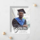 Cette élégante carte moderne de faire-part de graduation, avec un élégant script de calligraphie et votre photo de diplômé. Le verso de la carte offre des espaces de texte personnalisés pour des informations sur l'obtention du diplôme ou peut être reformulé pour faire de la carte une invitation de grand parti. Écriture noire sur régal chic blanc et gris argent sur le dos ou facilement customiser l'arrière - plan à une couleur de votre choix. Pour voir d'autres articles comme celui-ci, visitez mon magasin ici à "www.Zazzle.com/LakeViewCardCo". Merci