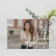 Faire-part moderne de graduation avec votre photo horizontale sur le devant avec "diplômé" affiché dans une superposition manuscrite blanche. Personnalisez le devant du faire-part de remise de diplômes avec le nom du diplômé, le nom de l'école et l'année de remise de diplômes. La simple faire-part de graduation inverse pour afficher une photo supplémentaire avec de l'espace fourni pour inclure les plans futurs du diplômé, les détails de graduation, etc. Les 2 faire-part de remise de diplômes photo sont parfaits pour les diplômes du secondaire et collégial!
