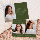 Annoncez les réalisations et les plans de votre diplômé avec ce faire-part de graduation photo moderne et élégant. L'avant du faire-part affiche 2 photos - 1 photo horizontale et 1 photo verticale. "Graduate" est affiché dans un script blanc à la mode écrit à la main avec un arrière - plan vert olive. Personnalisez le faire-part de graduation vert olive avec l'année et le nom du diplômé. Le faire-part inverse pour afficher une photo supplémentaire avec votre texte personnalisé en lettres blanches. Ce faire-part de 3 diplômes photo est parfait pour les baccalauréat ou collégial.