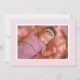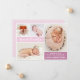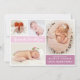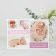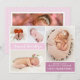 Moderne, Fille Rose Mauve Baby Faire-part de naissance 4 Cartes Photo Collage. Elégante et adorable carte de modèle photo recto verso avec quatre (4) de vos photos préférées de bébé sur le devant, avec un joli script écrit à la main en blanc sur des blocs de couleur pastel rose doux et mauve ou violet clair. Ajoutez le nom de votre bébé sur le devant et les statistiques de naissance. À l'arrière, il y a une photo horizontale pour bébé sur un arrière - plan en pointillé rose vif. Vous pouvez facilement le personnaliser.