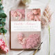 Elégante carte de Faire-part de naissance 3 Photo Collage Moderne avec d'adorables rayures d'aquarelle rose rose roux à l'arrière. Vous pouvez personnaliser cette belle carte avec vos photos de nouveau-né bébé. Veuillez remplacer les photos par les vôtres. Photos avec l'aimable autorisation de https://pixabay.com/es/users/bongbabyhousevn-15950077/.