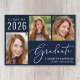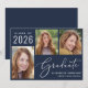Simple Class of 2025 dark marine bleu photo graduation faire-part avec un collage de 3 images et "Graduate" dans un élégant script blanc. Ajoutez le nom du diplômé, l'année de classe et l'école ou l'université dans la typographie blanche moderne.