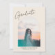 Ce faire-part de graduation présente le texte Graduate dans une grande typographie de script tendance au-dessus d'une photo de votre diplômé dans un arc. Customisez le texte ci-dessous avec le nom de votre diplômé, l'école et la classe de détails. Le dos comporte une photo et une pièce pour vous d'inclure un message sur ce que votre diplômé fera dans les années à venir!