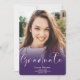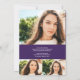 Un script moderne et simple violet diplômé avec 4 photos faire-part graduation. Ajoutez votre message à l'arrière.