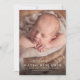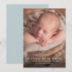 Présentez votre nouveau bébé avec ce faire-part de naissance photo vertical doux et simple. L'accueil est un script élégant et moderne et il y a de la place pour un grand nom, des statistiques et des noms de parents aussi. Le dos est une bande bleue douce moderne. Parfait pour partager des photos de nouveau-nés avec des amis et la famille!