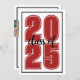 Un faire-part de graduation verticale intemporelle et polyvalente avec l'année "2025" en caractères rouges gras, avec "classe de" élégamment écrit en écriture noire à travers le milieu. Le design comprend des cadres de ligne noirs élégants à l'avant et à l'arrière, ajoutant une touche polie. Entièrement personnalisable, vous pouvez ajuster les couleurs de l'année, du texte et de l'arrière - plan en fonction des couleurs de l'école ou de votre thème. L'arrière reflète l'avant avec un cadre en ligne noire propre, offrant de l'espace pour les photos et un message sincère des parents. Ce design sophistiqué et classique est parfait pour célébrer cette réalisation majeure.