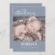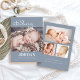 Cette simple carte de montage photo moderne est parfaite pour partager la bonne nouvelle de l'arrivée de votre bébé. Il dispose d'une seule photo à l'avant avec un script cardiaque moderne avec le mot "introduction" sur un arrière - plan bleu poussiéreux. Sur le dos, un collage de trois photos. Ajoutez le nom et les statistiques de naissance de votre bébé pour personnaliser la carte.
