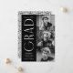 Faire-part de graduation élégante avec les trois photos du diplômé situées à droite du design dans une mise en page verticale. Le " Grad " est présenté en blanc, de style art déco moderne, avec un arrière - plan noir. Personnalisez le faire-part moderne de diplôme en photo en ajoutant le nom du diplômé, l'année de diplôme et le nom de l'école. La conception inverse pour afficher un arrière - plan pivotant géométrique noir et blanc. Parfait pour les bacheliers et collégiaux !