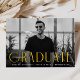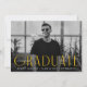 Faire-part de graduation simple avec la photo horizontale du diplômé avec "Graduate" affichée en lettres jaunes et modernes art déco. Personnalisez l'avant du faire-part de remise de diplômes en photo unique en ajoutant le nom du diplômé, son école et son année d'études. La faire-part s'inverse pour afficher une conception géométrique tourbillon jaune et blanc.