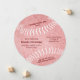Cette invitation à la fête d'anniversaire sur le thème du softball présente l'image stylisée d'un softball rose avec une texture numériquement et une couture blanche, sur laquelle vous pouvez customiser les détails de la fête - par katz_d_zynes