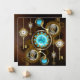 Turquoise lenses with antique watch with brass gears and golden keys on rusty, brown background. Steampunk style.