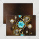 Turquoise lenses with antique watch with brass gears and golden keys on rusty, brown background. Steampunk style.