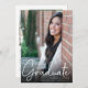 Trendy Script Overlay Two Photo Gradation Faire-part and Grad Party - Votre diplômé est présenté sur notre faire-part de graduation, en couleur, plein saignement sur le devant de l'invitation. Carte également caractéristiques, jolie typographie manuscrite de style script. Notre faire-part est à la fois une invitation de Graduation Faire-part et Grad Party au dos de la carte. Il y a aussi un espace important pour la photo de votre diplômé au dos de la carte et beaucoup d'espace pour personnaliser vos informations. Si joli et pratique ! La carte fait partie d'une collection.