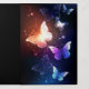 Night glowing butterflies on a dark abstract background. Du beurre noir. Design avec du beurre.