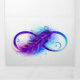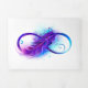 Infinity symbole with a beautiful feather painted in purple and blue bright colors on white background