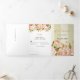 Cette élégante invitation de mariage pliée en trois présente une belle composition de roses et d'hydrangeas de couleur terre cuite, nichée sur un fond vert doux. Parfait pour annoncer votre jour spécial avec style et sophistication, cette annonce est sûre d'impressionner vos invités.