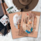 Conception de blocs de couleur rétro dans des tons de terre cuite déserte muet avec des photos rectangle oblong courbés sur l'avant et l'arrière et le mot "Graduate" dans le texte de script (inmodifiable) sur l'avant sous la photo. Conception composite par Holiday Hearts Designs (droits réservés) avec des photos d'espace réservé modèle via Unsplash.