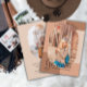 Conception de blocs de couleur rétro dans des tons de terre cuite déserte muet avec des photos rectangle oblong courbés sur l'avant et l'arrière et le mot "Graduate" dans le texte de script (inmodifiable) sur l'avant sous la photo. Conception composite par Holiday Hearts Designs (droits réservés) avec des photos d'espace réservé modèle via Unsplash.