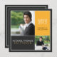 Des blocs de couleur modernes met en évidence deux photos de votre diplômé. Tout le texte peut être customisé à être utilisé comme faire-part d'événements de début (comme indiqué) ou à se transformer en invitation de partie en modifiant le texte à l'arrière pour répondre à vos besoins.