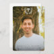 Un faire-part photo élégant, neutre pour les hommes et les femmes, pour célébrer ceux qui obtiennent des diplômes de médecine. Doté d'une photo à fond saigné sur le devant avec du texte superposé et le symbole de la caducée (avec l'abréviation "MD") entouré d'une couronne de laurier. Le texte modèle pour les détails du diplômé est entièrement personnalisable, de sorte que la taille de police, le style, la couleur et le placement peuvent être changés. L'arrière comporte une deuxième photo plus petite et un texte modèle pour un message plus long. Le design est disponible en d'autres couleurs, avec un symbole Asclepius, avec des conceptions pour des qualifications spécifiques (RN, DO) et avec des dispositions/orientations différentes dans mon magasin.