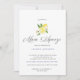 Célébrez la future mariée avec cette invitation de bapteme de mariage élégante de style méditerranéen. Caractérisée par des citrons à l'aquarelle, des fleurs bleues douces et un script écrit à la main, c'est parfait pour un bapteme de mariage en été ou dans un jardin. Personnalisez facilement le texte pour votre événement spécial. Idéal pour une célébration sur le thème des citrons, inspirée de l'Italie ou chic rustique.