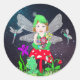 Fairy Elf Girl sitzt auf magischem Pilz Runder Aufkleber