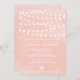 Invitation amusante et fantaisiste avec des lumières à cordes blanches sur un arrière - plan rustique d'aquarelle blush. D'autres couleurs sont disponibles.