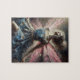 Eine Fee mit schönen rosa Flügeln in einem Kleid aus Vintagen Jeans aus Denim geschnitten und alle zusammengeklebt