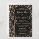 Dunkle Märchenwald-Trauung Einladung mit zwei Rose Knospen in einer Dornrebe, dunkelbraunen mit goldenen Schriftart und einem sternenbraunen Kontrast zu zwei romantischen rote Rosen.