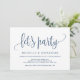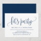 Cette carte d'invitation au design calligraphique moderne (faisons la fête) est parfaite pour votre annonce/ célébration de mariage en fuite. Ajoutez vos détails dans une police/ lettrage bleu marine assortie.