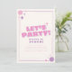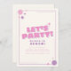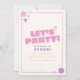 Commencez la fête avec cette invitation d’anniversaire "Faisons la fête !" audacieuse et ludique, idéale pour les enfants qui aiment s’amuser et s’amuser ! Avec une typographie d'inspiration rétro, des accents joyeux rose et violet, et des graphismes de starburst attrayants, ce design apporte l'énergie pour n'importe quel bain d'anniversaire. Customisez facilement le texte avec le nom de votre enfant, son âge, les détails de la fête et les renseignements sur le RSVP. Disponible en téléchargement numérique, cet invitation est idéal pour l'impression à la maison ou l'envoi électronique. Une façon amusante et dynamique de lancer une fête mémorable!