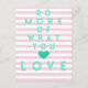 NewParkLane - Carte postale, avec une citation inspirante "Faites plus de ce que vous aimez" dans une typographie moderne en turquoise, contre un motif abstrait de rayures roses et blanches.